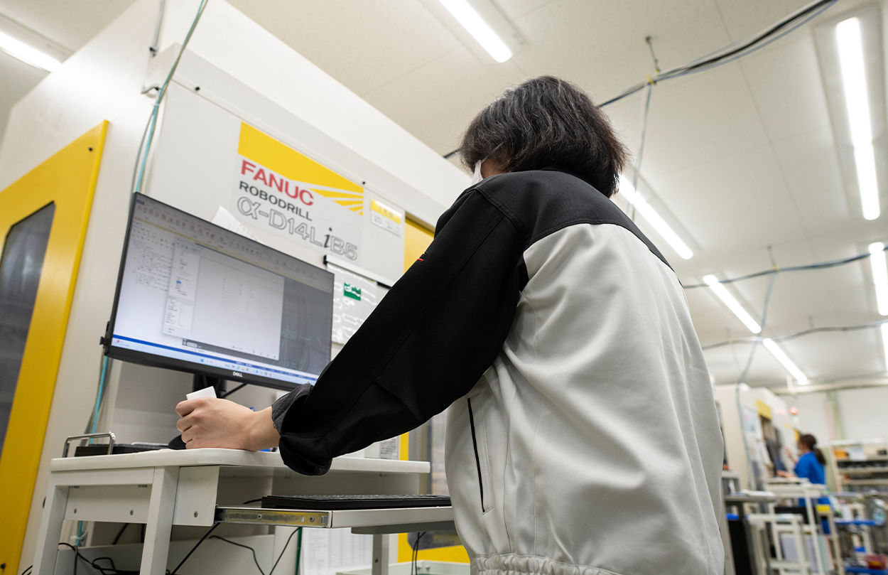 リピート品の製造も多く、プログラムを共有しやすい体制が整っているため、工具の選択やポスト・座標変換などの軽微な修正だけで入社間もない若手社員でもスムーズに操作できる点が大きな助けになっています。