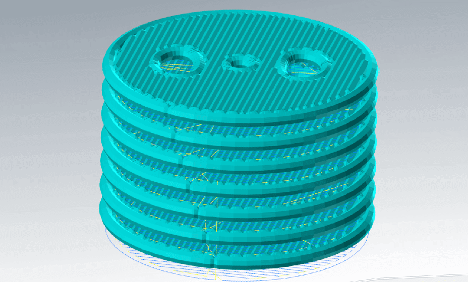 平面を基準とし、レイヤー高さに合わせてスライス処理を行い、積層パスを生成します。