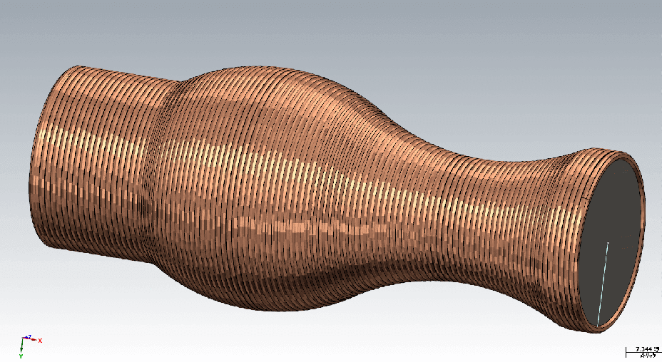 軸を中心とした回転体に対するロータリー積層パスを生成します。