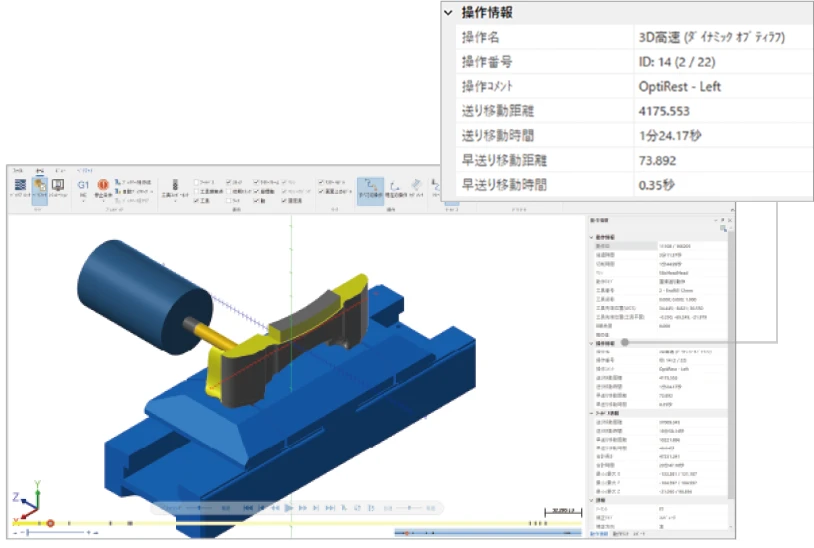 オプティラフ加工とダイナミック加工の進入らせん動作にテーパーオプションが追加され、加工の効率化に寄与します。
