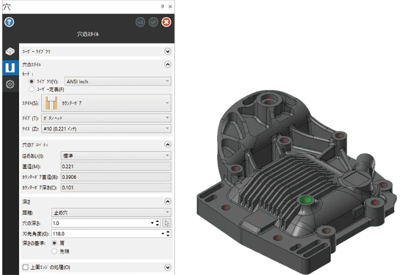 ソリッド穴を作成するワークフローの設計が変更され、穴の管理とカスタマイズが強化されています。