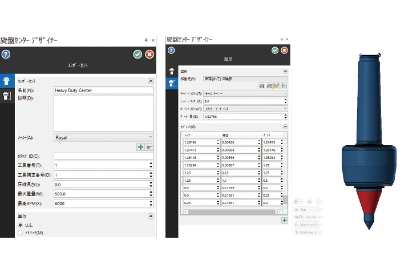Mill-Turnにおいて、心押台やタレットに取り付ける回転センターと固定センターの両方を作成できるようになりました。