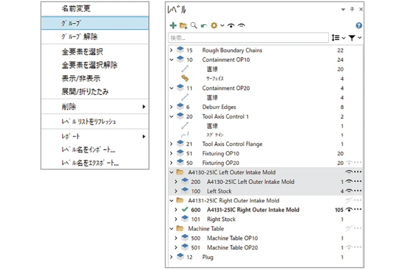 レベルマネージャのデザインやオペレーションが一新されました。ツリー状の構造となり、グループ化できるようになるなど、整理しやすく改良されました。